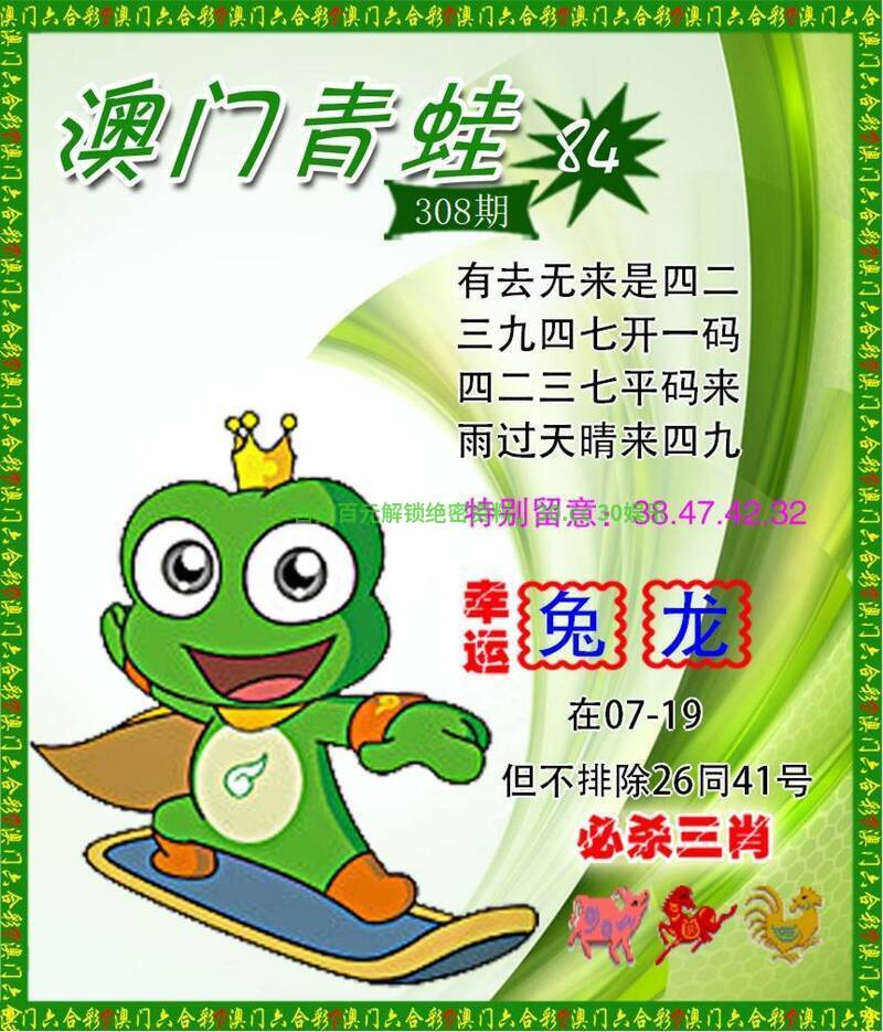 308期:有去无来是四二,三九四七开一码,四二三七平码来,雨过天晴来四九 解释:雨过天晴来四九,解天肖兔龙猪牛猴马 生肖:兔龙猪牛猴马 |